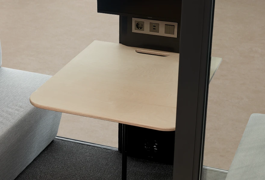 내부 공간에 적합한 사이즈의 자작나무 테이블과 편안한 등받이형 소파로 사용자에게 편리한 환경을 제공합니다.