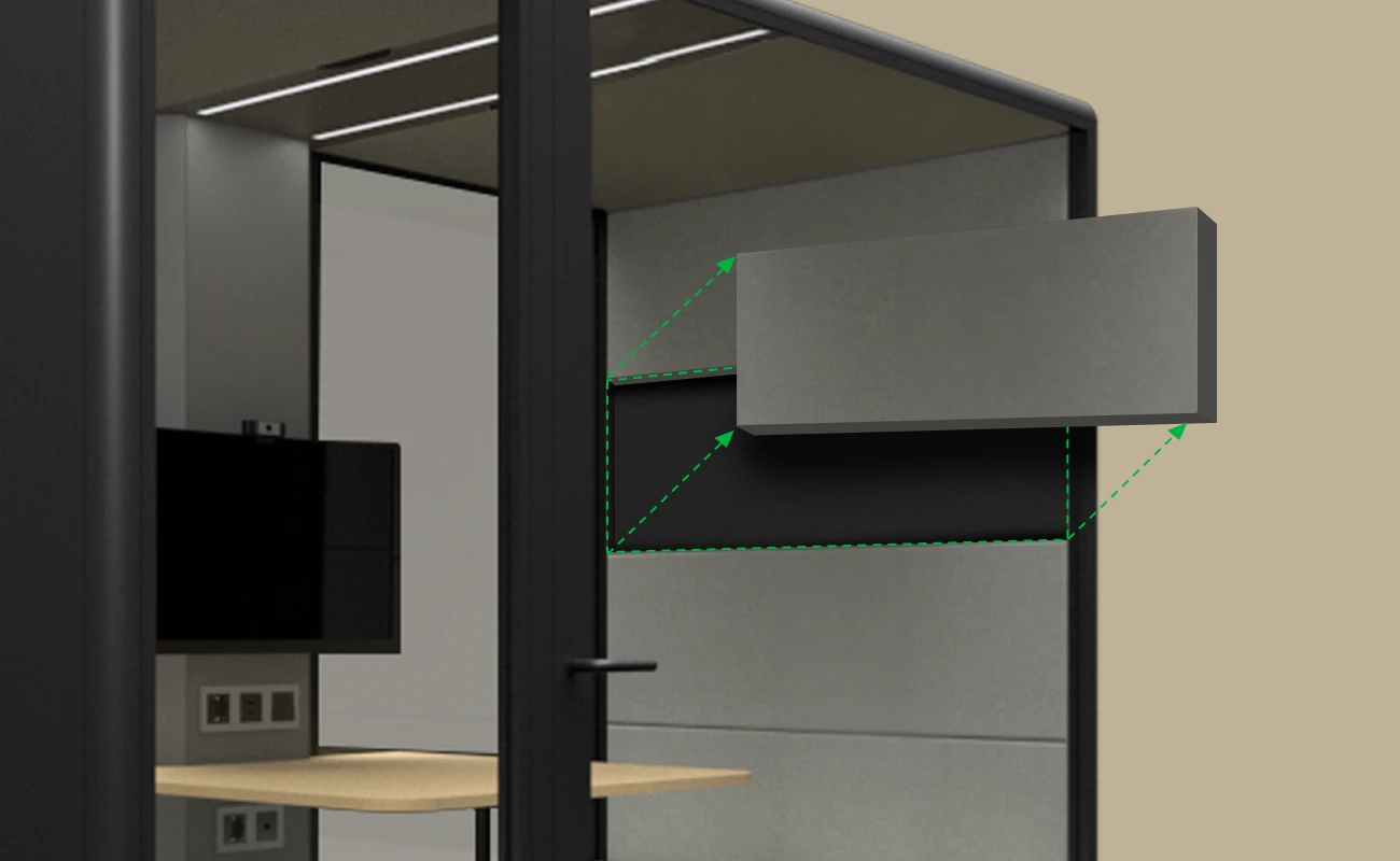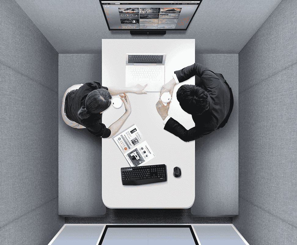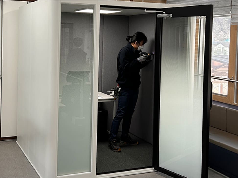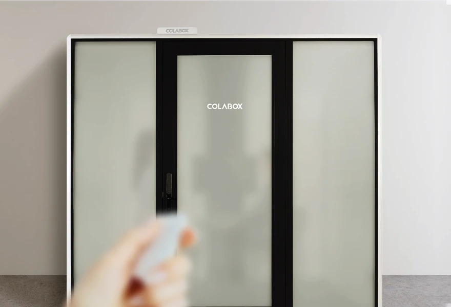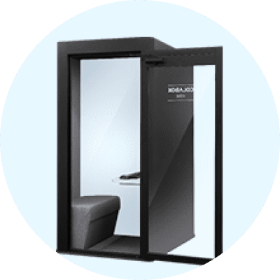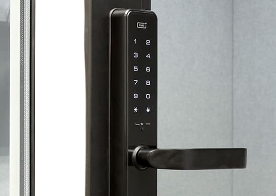 오픈된 공간에서 회의실 관리를 위해 비밀번호, 카드, 키를 사용하여 부스의 문을 잠글 수 있습니다.