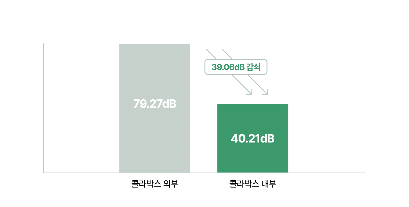콜라박스의 소음 감쇠 수치는 39.06dB로,