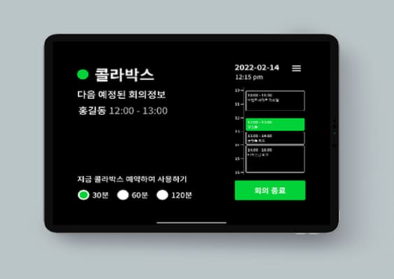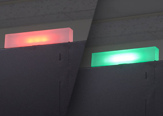 회의실 외부에 사용중 표시등을 설치하여 내부가 사용 중인지 여부를 쉽게 확인할 수 있습니다.