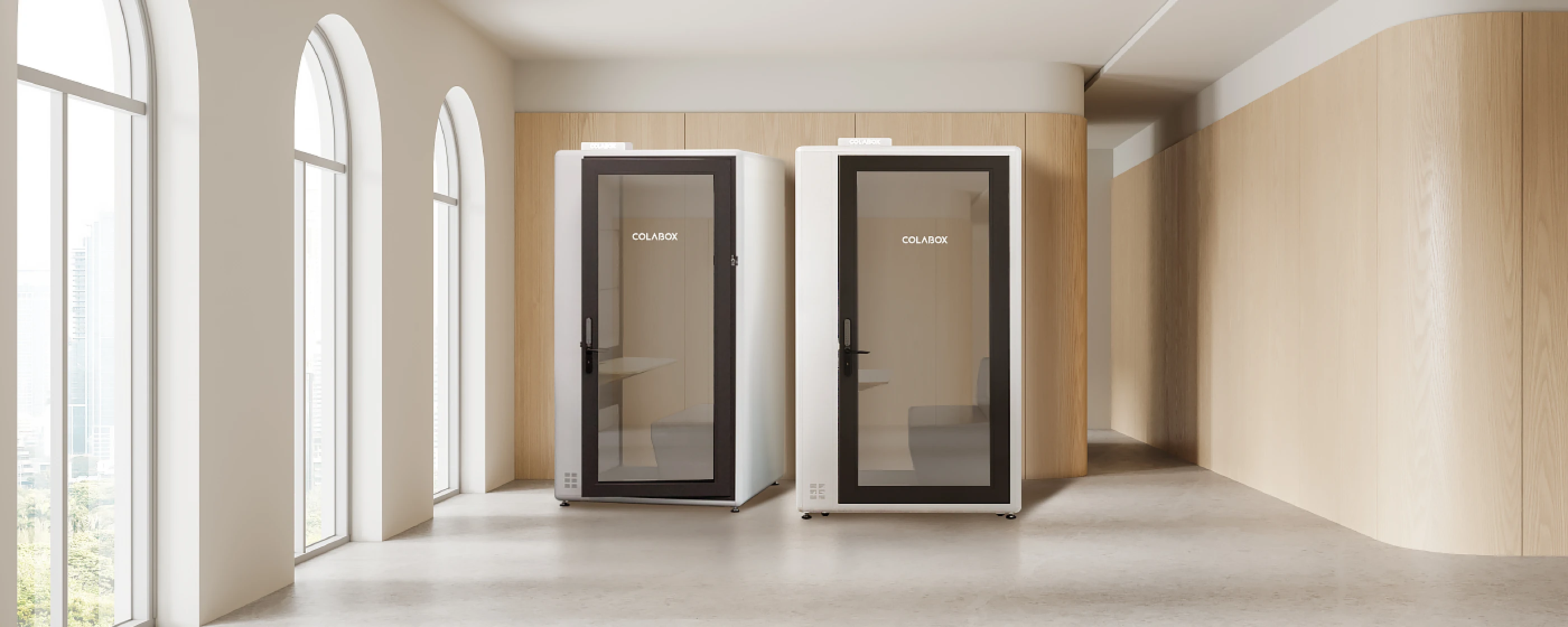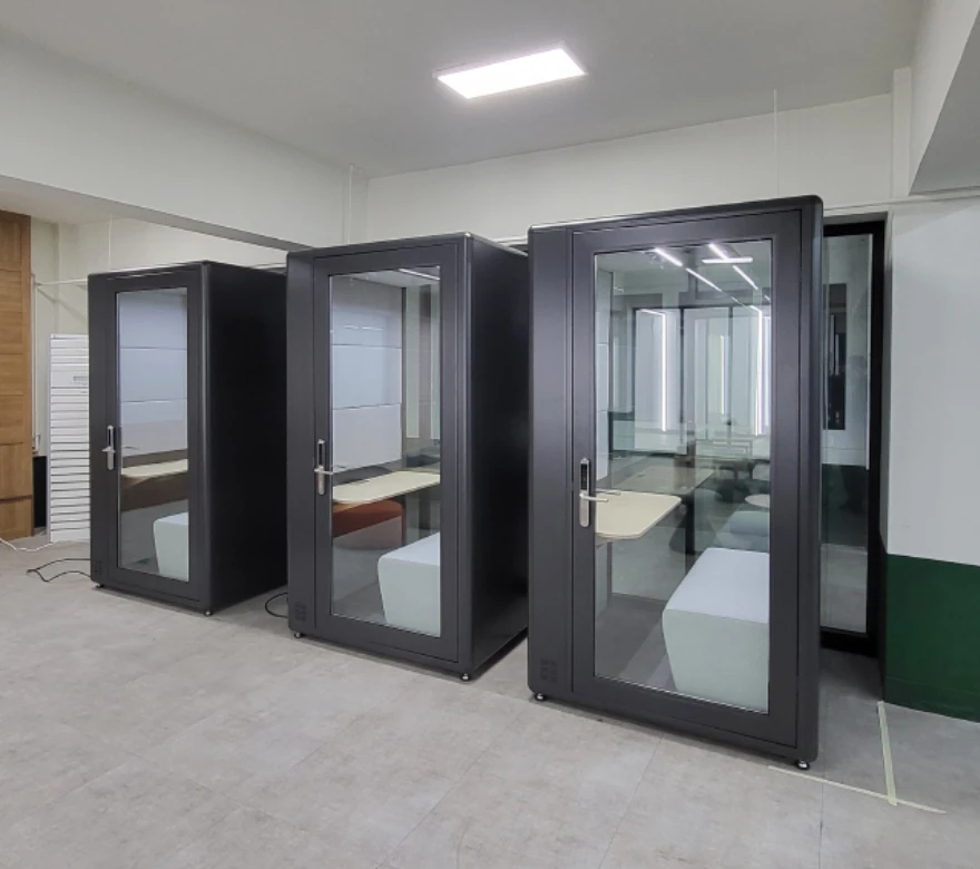 SOLO 사이즈에서는 업무 집중 공간, AI 면접 부스, 1인 미디어룸, 비대면 화상 교육 부스, 휴게 부스 등 다양한 용도로 활용됩니다.